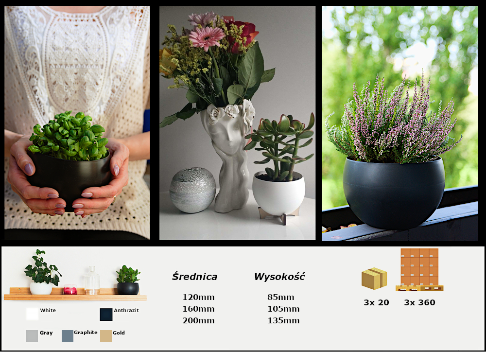 Cool.Ka to połączenie prostoty i elegancji, które sprawia, że rośliny zyskują wyjątkową oprawę. Wykonana z trwałego polipropylenu, osłonka charakteryzuje się nowoczesnym designem i wysoką jakością wykonania. Jej klasyczna, kulista forma sprawia, że doskonale komponuje się w różnych aranżacjach wnętrz – zarówno w nowoczesnych przestrzeniach, jak i bardziej tradycyjnych wystrojach.